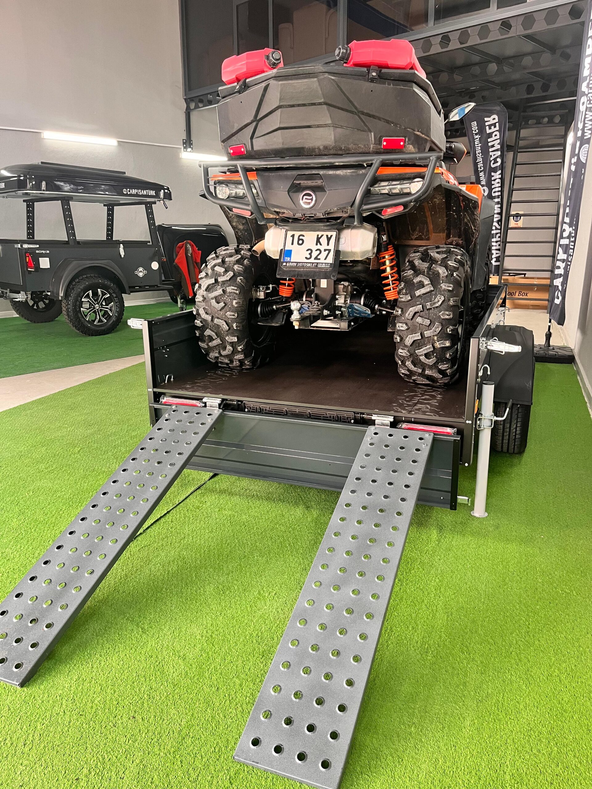 Off-road maceraları sırasında, ATV ya da UTV'nizi en zorlu arazilere sorunsuz bir şekilde taşıyabilmek, yolculuğunuzu planlarken en önemli detaylardan biridir. Bu römork, her türlü arazi aracınızı güvenli ve sağlam bir şekilde taşımak için tasarlanmıştır. Ayrıca, geniş taşıma kapasitesi sayesinde, sadece ATV ya da UTV'nizi değil, aynı zamanda kamp malzemelerinizi, ekstra yedek parçaları ve diğer ekipmanları da rahatça yükleyebilirsiniz.